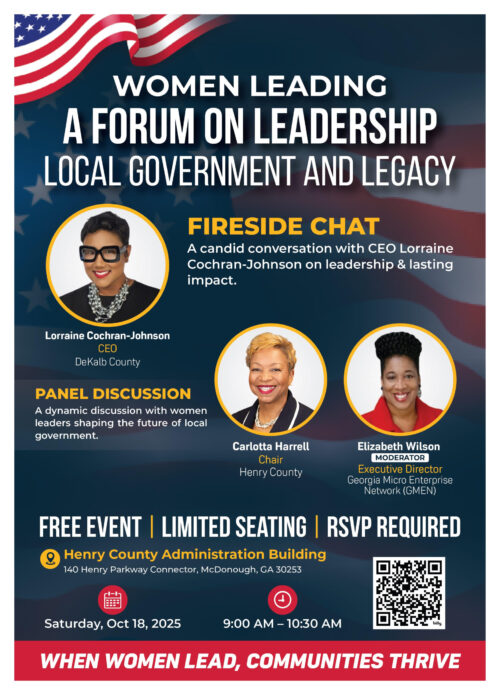 Date: Saturday, October 18, 2025Time: 9:00 AM â 10:30 AMLocation: Henry County Administration Buildingđ 140 Henry Parkway Connector, McDonough, GA 30253 Description: Join us for a dynamic discussion on women's leadership in local government and leaving a lasting legacy Join us at the Henry County Administration Building for an empowering event focused on women in leadership roles. […]