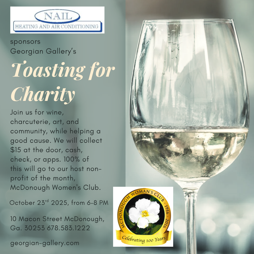 Hosted by Georgian Gallery Sponsored by NAIL Heating and Air Conditioning Join us for an evening of wine, charcuterie, art, and community â all for a wonderful cause! Georgian Galleryâs Toasting for Charity brings people together to celebrate creativity and generosity while supporting local non-profits. This monthâs proceeds will benefit the McDonough Womanâs Club, an […]